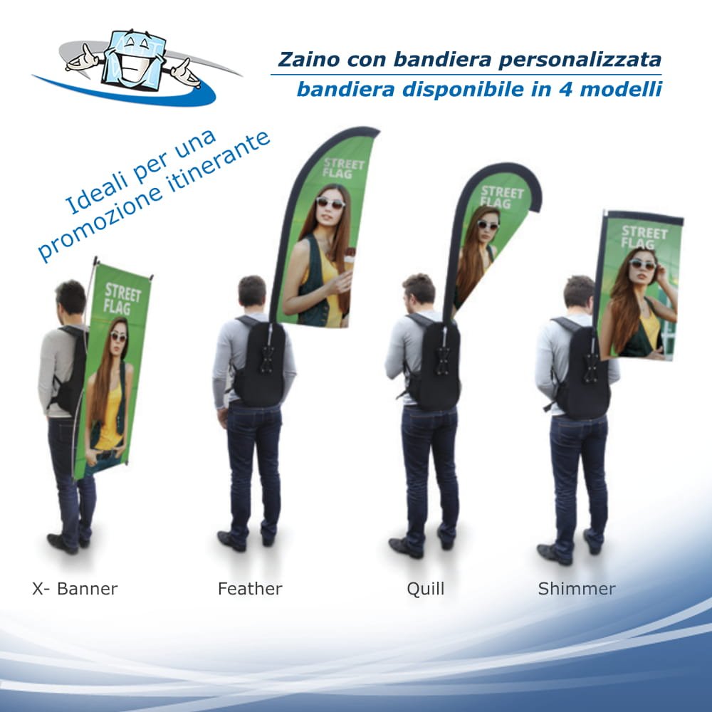 US - Dimensione - Bandiera Medium Feather - H 326 x L 59 cm, US - Basi - Base quadrata Lite (cod. UF-ZMLSB), US - Personalizzazione - Stampa Bifacciale