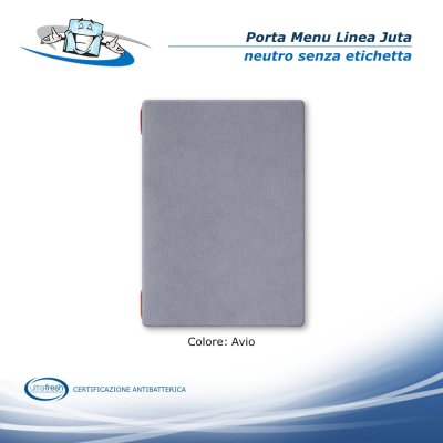 DG - Colore - Juta celeste, DG - Etichetta - Metallo Lucida con scritta menù, DG - Formato - Note Menu "L" - L 16,5 x H 23 cm