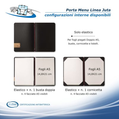 DG - Colore - Juta bicolor, DG - Interno menu - Con n. 1 inserto busta, DG - Etichetta - Patch con scritta menù