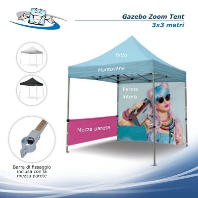 US - Pareti intere Gazebo - Nessuna, US - Mezze pareti Gazebo - N. 6 mezze pareti 3x3 m + N. 6 barre di fissaggio