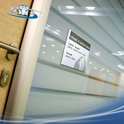 Targhe porta informazioni, tasche in plexiglass, fissaggio poster a binario, bacheca espositiva