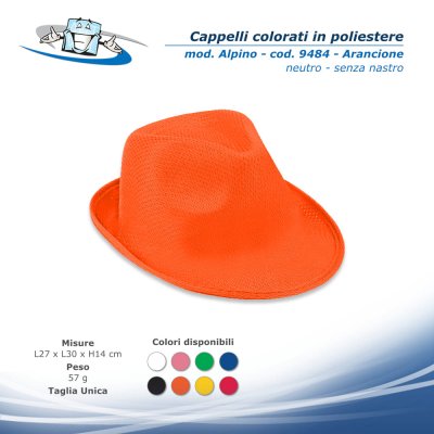Cappelli unisex in poliestere colorati. Ottimo gadget o veicolo pubblicitario per aziende commerciali. Disponibili senza nastro o con nastro...