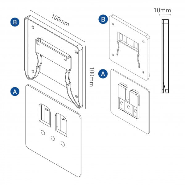 2 - Accoppiare la placca A con la placca B (già fissata al pannello).