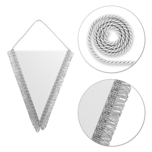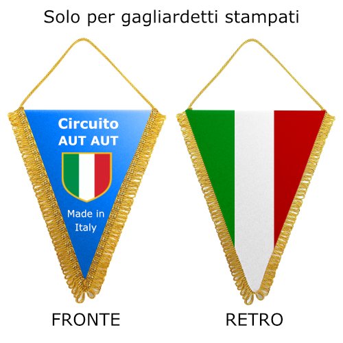 Dimensioni gagliardetto triangolare mod. 6 base (come da foto): L 23 × H 28,5 cm (misura comprensiva di frangia).