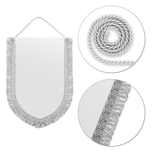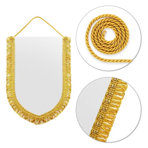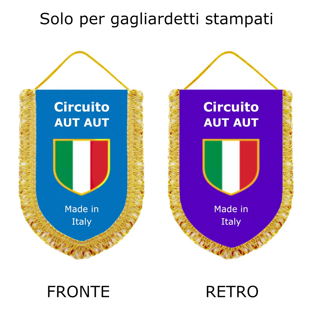 Dimensioni gagliardetto a scudo mod. 23 base (come da foto): L 20,5 × H 28 cm (misura comprensiva di frangia).