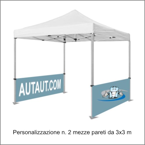 US - Pareti Intere Gazebo (generico) - Nessuna, US - Mezze Pareti Gazebo (generico) - N. 1 mezza parete 3x3 m + N. 1 barre di fissaggio